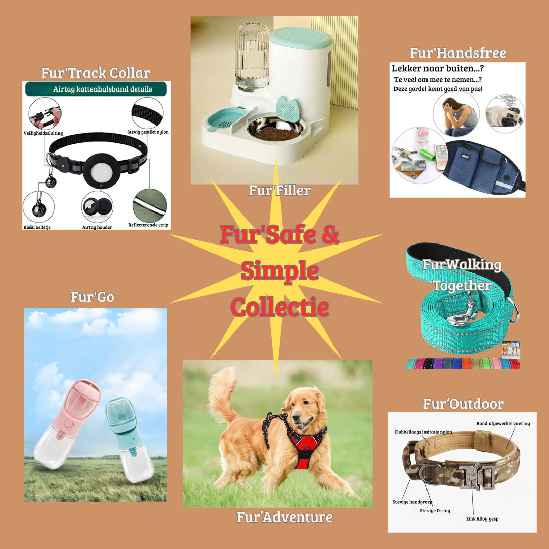 Fur'Safe & Simple – Veiligheid zonder fratsen Niet alles hoeft te glimmen om goed te zijn. In onze Fur'Safe & Simple collectie vind je alles wat je nodig hebt voor een veilige, comfortabele wandeling of reis met je dier, zonder glow, maar mét liefde.